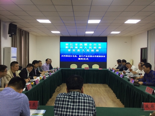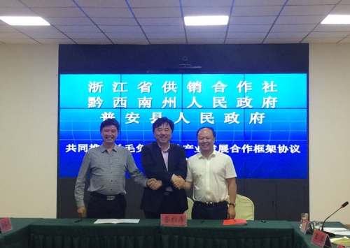 仪式上,双方就各自发展需求、产业扶贫工作以及下步可合作领域作了充分的交流。邵峰主任代表省社与黔西南州、普安县签订了合作框架协议。下步,省供销社将普安县作为社属企业“走出去”发展和实施东西联动、产业精准扶贫的重点县。社属浙江新大集团将通过其发起成立的贵州新普科技股份有限公司在普安建设长毛兔产业园,打造长毛兔养殖、兔毛深加工、成品销售的完整产业链,努力使园区成为浙江、贵州两省东西协作扶贫的典范项目。社属浙江省茶叶集团将参与普安县茶叶产业发展,开展国内外贸易和经济技术合作,共同做强“普安红”茶叶产业。