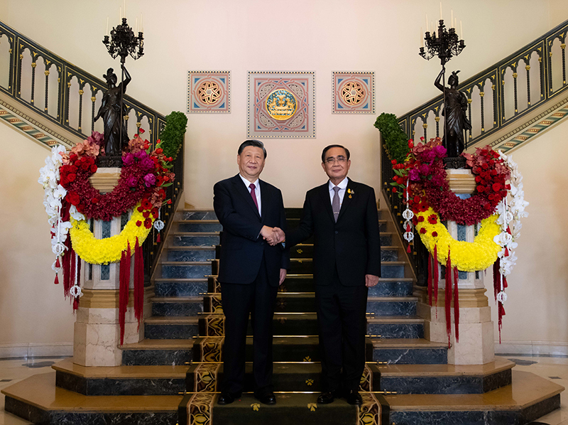 当地时间11月19日中午,国家主席习近平在曼谷总理府同泰国总理巴育举行会谈。双方宣布,构建更为稳定、更加繁荣、更可持续的中泰命运共同体。