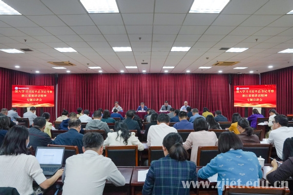 为进一步学习好、宣传好、贯彻好习近平总书记考察浙江重要讲话精神,推动学习宣传贯彻活动在学校落地生根、见行见效,11月6日,学校举行政治学习月会,党委书记劳赐铭宣讲习近平总书记考察浙江重要讲话精神。学校党政领导班子、全体中层干部参加会议。