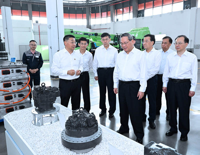 李强先后来到徐州市、南京市,走进企业、科研院所、工程现场、贸易合作平台等,深入了解经济运行情况。在江苏汇智高端工程机械创新中心有限公司,李强听取实验项目等汇报,察看核心零部件和产品。他指出,工程机械行业高端化、智能化、绿色化发展是大势所趋。要对标国际先进水平,积极运用人工智能、清洁能源等技术,推动产业转型升级。要聚合行业资源,搭建大中小企业协同创新平台,促进企业优势互补、相互赋能。在深地科学与工程云龙湖实验室,李强听取相关技术装备研发进展等介绍,希望大家把科技创新和产业需求有效结合,推进重大原始创新和技术突破,加快产业化落地和市场应用推广。在南京原子制造研究所,李强了解原子级制造技术发展等情况,勉励他们锚定新领域新赛道,加强前瞻性布局,深入开展基础研究,推动跨学科交叉融合创新和开放合作,抢占未来科技和产业发展制高点。